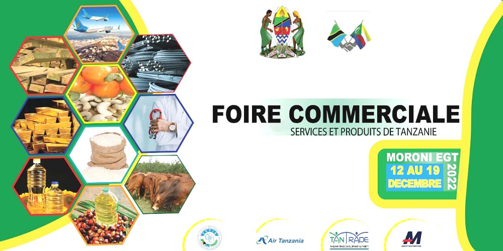 Ubalozi wa Jamhuri ya Muungano wa Tanzania katika Muungano wa Visiwa vya Comoro utaandaa Maonesho ya Biashara ya Bidhaa na Huduma za Tanzania nchini Comoro kuanzia tarehe 12 - 19 Desemba 2022. Maonesho hayo yatafanyika katika eneo la Jamhuri ya Muungano wa Tanzania linalopatika EGT, Moroni na kutoa fursa kwa Taasisi za umma na binafsi, Wafanyabiashara na Wajasiriamali kutoka nchi mbili hizi kutangaza bidhaa na huduma zao.